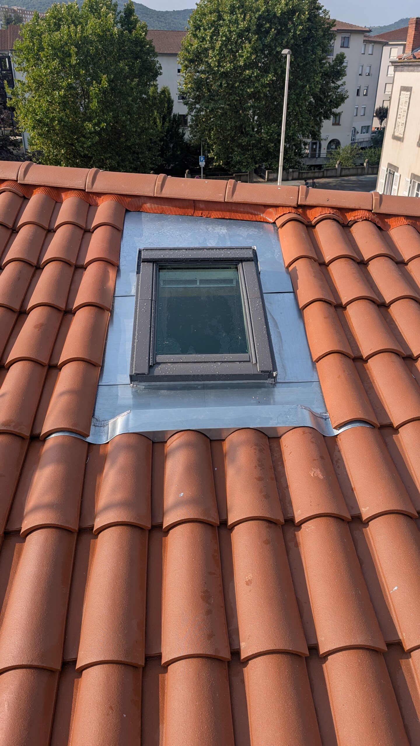Chez Ardesia Couverture Zinguerie, nous privilégions toujours la qualité et la longévité dans nos réalisations. Ici, nous avons procédé à l’installation d’une fenêtre de toit Velux, accompagnée d’un entourage en zinc sur mesure parfaitement intégré à une couverture en tuiles mécaniques.